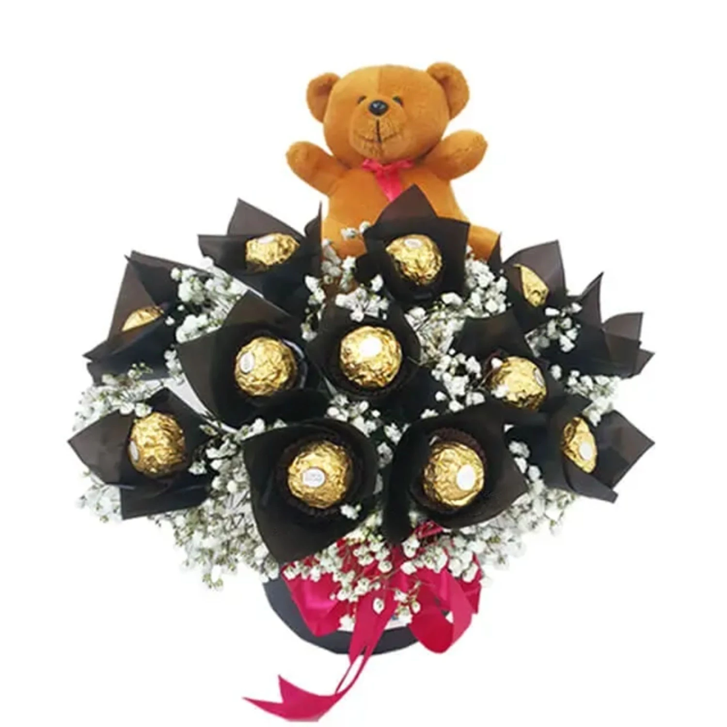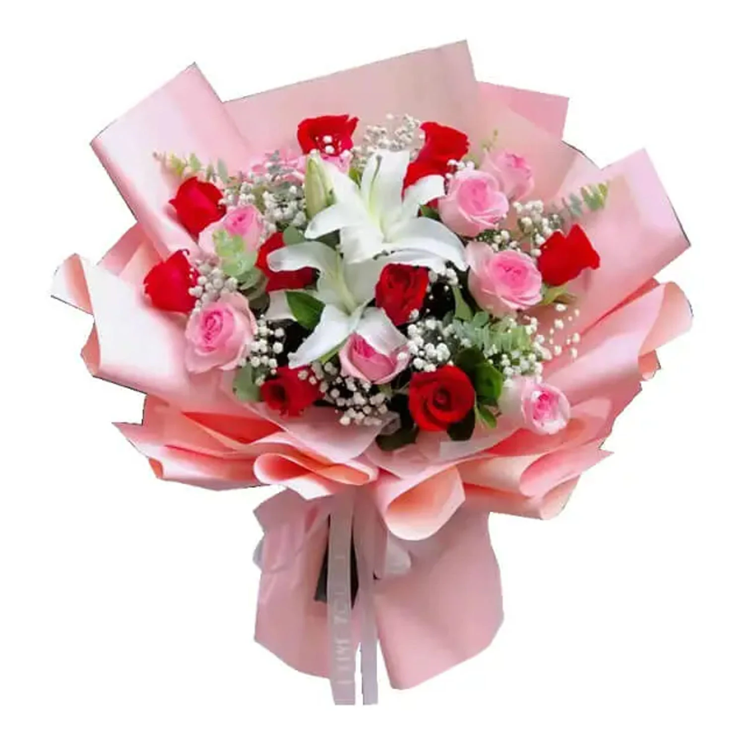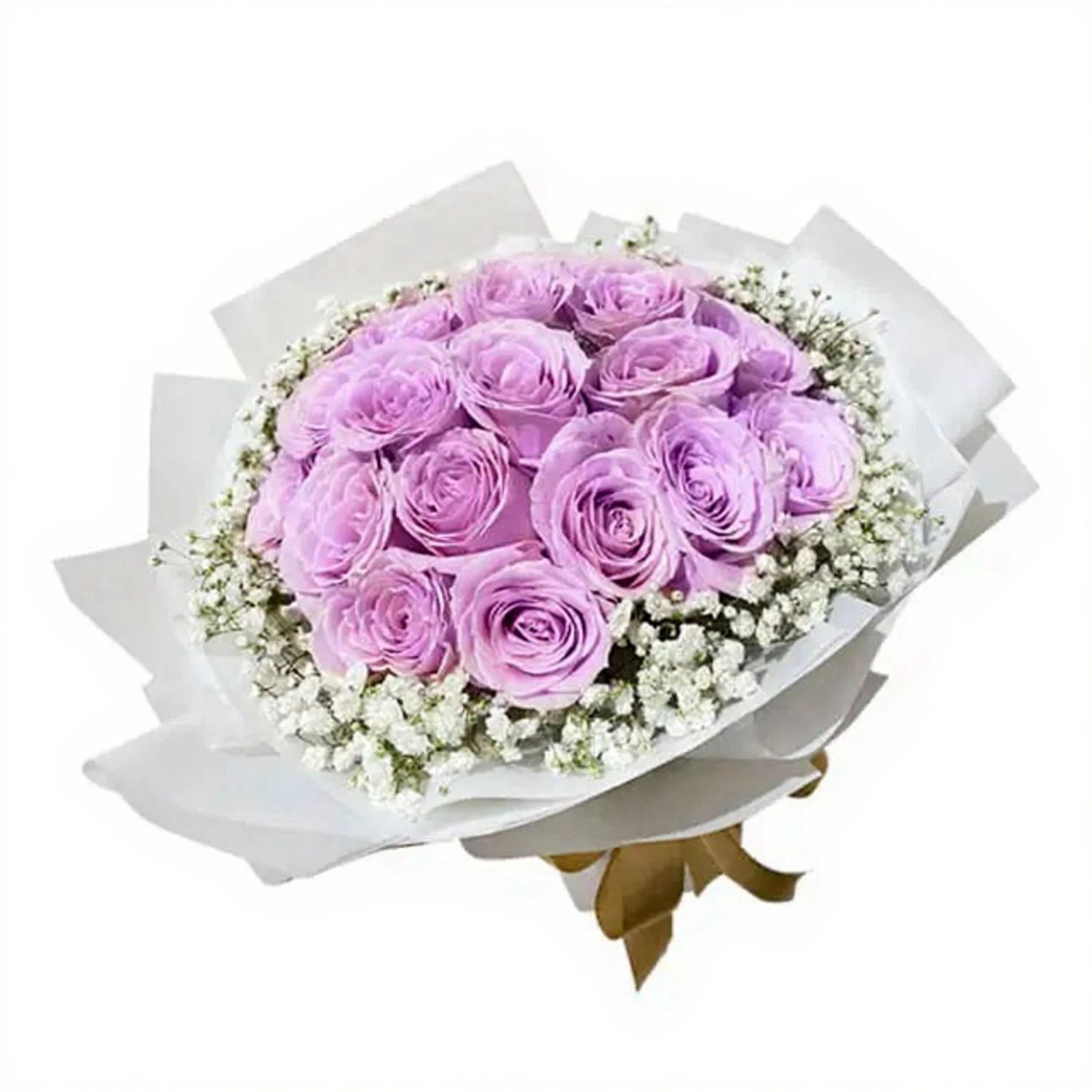 A bouquet of 10 Beautiful Pink Roses and Charming Baby Breath, perfect to express your feelings.
